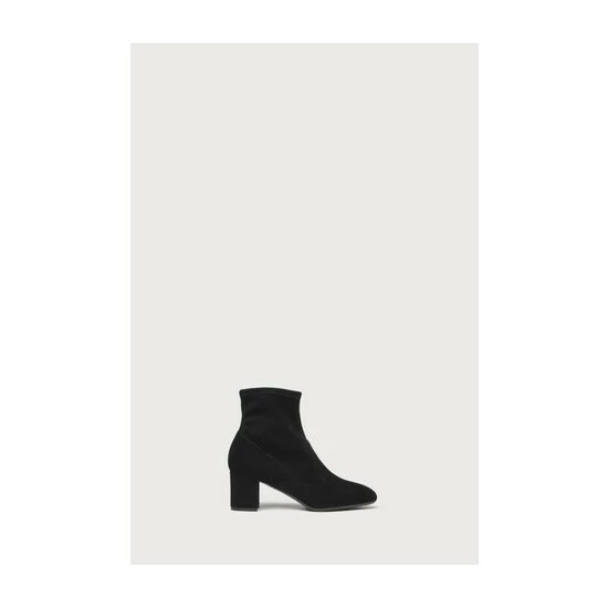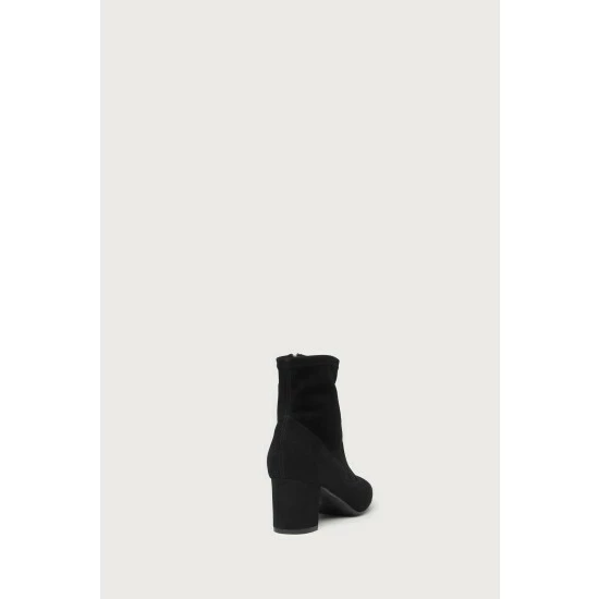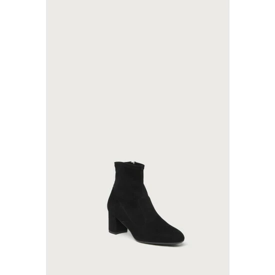 The Alexis ankle boot is crafted from navy-blue stretch suede and pulls on with a sock-like fit. It features an almond toe and block heel.