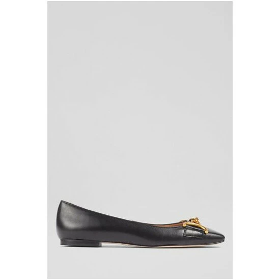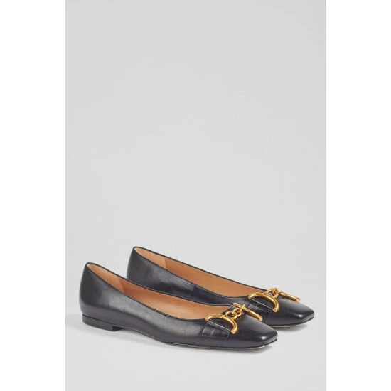 The Charlotte flats are crafted in Spain from black nappa leather. They have square toes, gold snaffle detail and matching soles and flat heels.