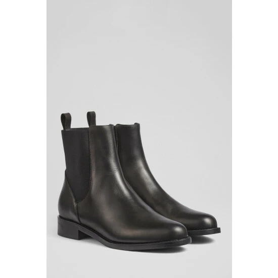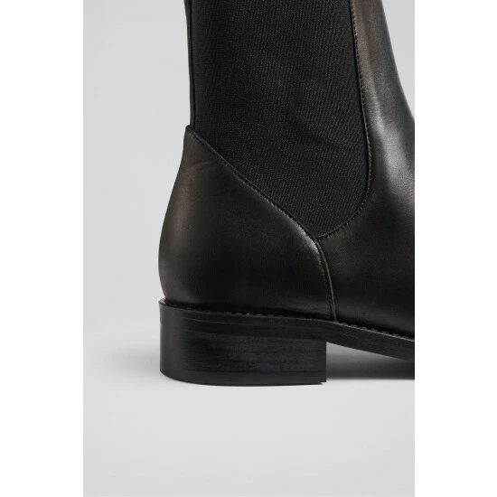 The Clara Chelsea boots are crafted in Italy from smooth calf leather in black. They have round toes, elasticated panels to the sides and a pull-on back tab.