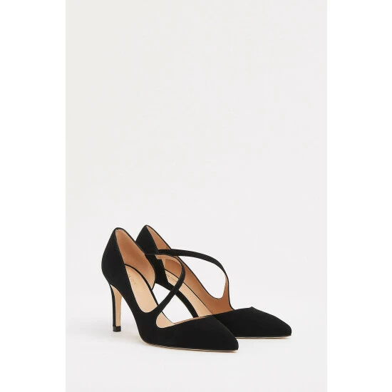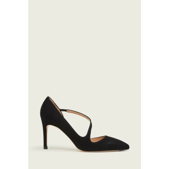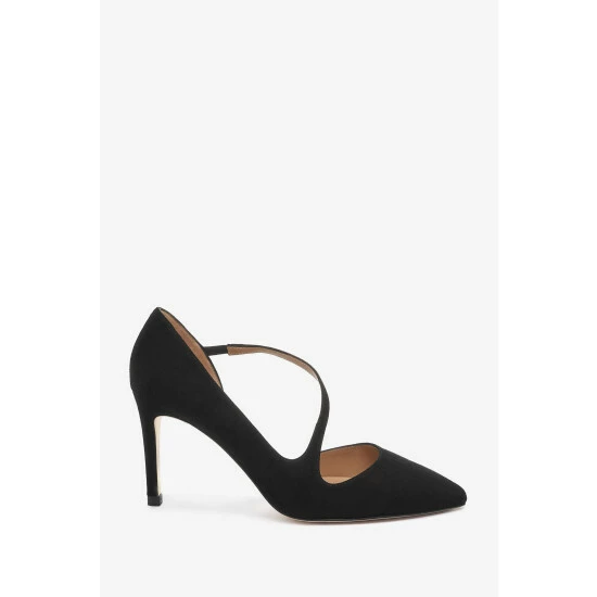 This Heather courts with their contemporary d’orsay cut, look really beautiful on the foot. Crafted in Spain from super-soft black suede, this sleek style has a pointed toe, asymmetric cut-out-detail across the foot and a slender, 85mm stiletto heel. Wear them as a stylish alternative to a classic court with skirts and dresses as a well as tailored looks.