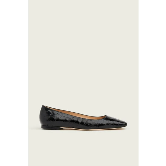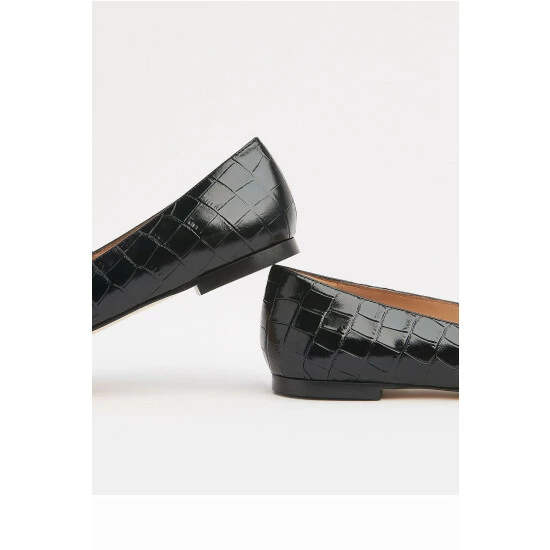 Simple and stylish, every wardrobe needs a chic pair of flats, and this Phyllis ballerinas perfectly fit the bill. Crafted in Spain from beautiful black croc-effect leather, they have a square toe, a sleek silhouette and a slight heel. Wearable and with minimalist appeal, pair them with tailored trousers or jeans for an understated everyday look.