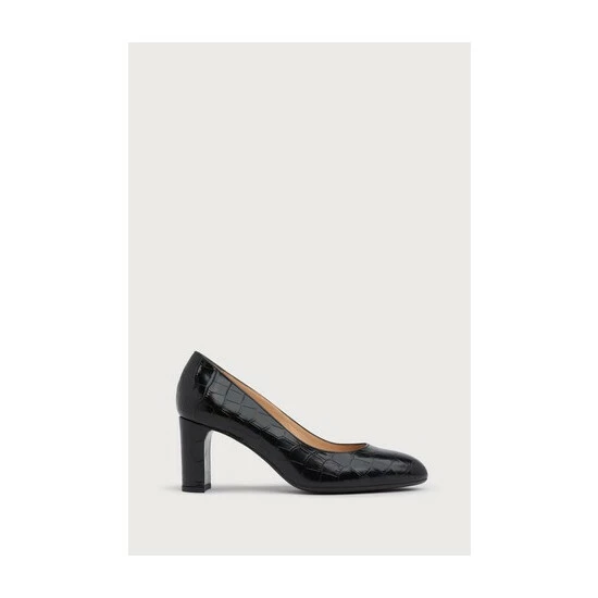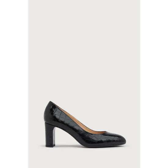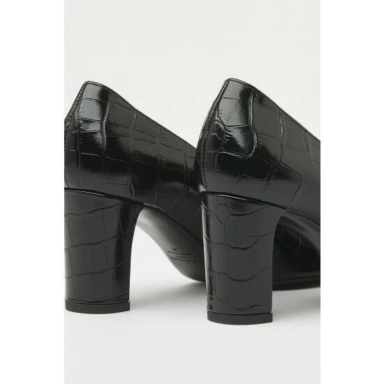 The Winola courts are crafted from black croc-effect leather. They have a round toe, block heel and a flexible, comfortable sole.