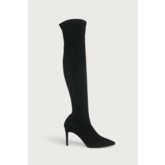 Sleek, sexy and offering a great fit, the L.K.Bennett Blake over-the-knee boots are a statement new style this autumn/winter. Crafted in Spain from black stretch suede, they pull on to just over the knee and are modelled on the pointed toe and stiletto heel shape of our bestselling Floret courts. Wear them with beautiful winter dresses and skirts.