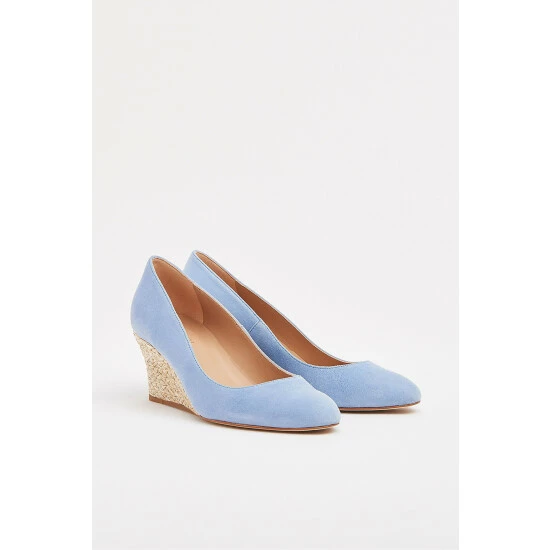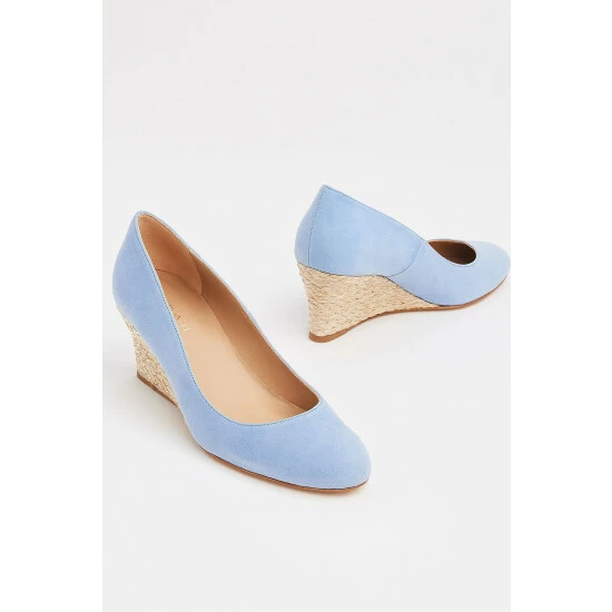 This Eevi wedges perfectly strike the smart/casual balance. Expertly-crafted in Spain from super-soft pale blue suede, they have a round toe, a sleek shape and an espadrille 65mm wedge heel. Wear them as an alternative to your usual courts for a more summery feel.