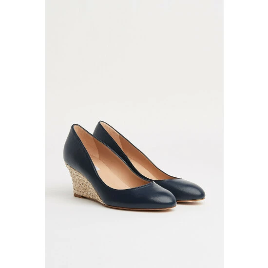 Our Eevi wedges perfectly strike the smart/casual balance. Expertly-crafted in Spain from navy blue smooth nappa leather, they have a round toe, a sleek shape and an espadrille 65mm wedge heel. Wear them to the office instead of your usual courts for a more summery feel.