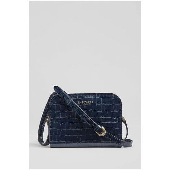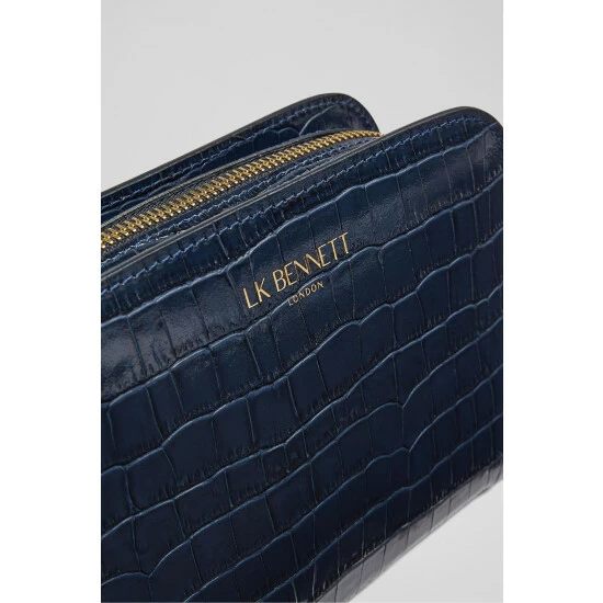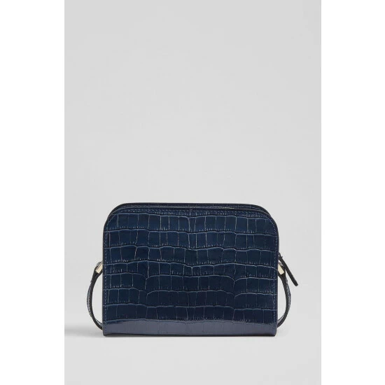The Marie cross-body bag is crafted in Italy from Navy croc-effect leather. It has a hidden zip-around fastening, two compartments, branding detail to the front, a cotton lining and an adjustable cross-body strap.