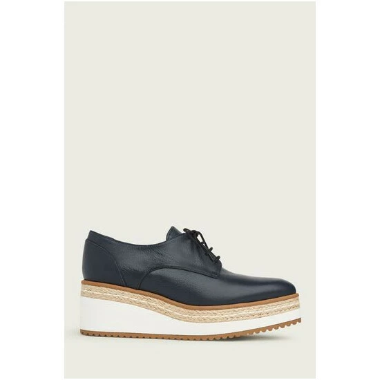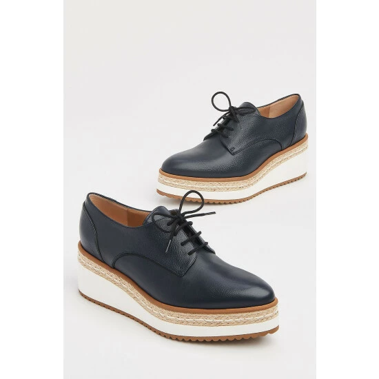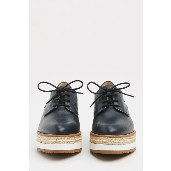 Crafted in Spain from soft grain calf leather in navy blue, they have navy laces, seam stitch lines and an espadrille trim to the contrast white platform sole.
