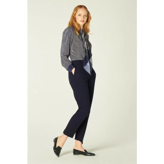 A classic pair of tailored trousers belong in every wardrobe. Perfect all-year round, our Wren trousers sit on the waist, have belt loops, a classic zip fly, side pockets, and are a slim cut cropped at the ankle with pressed centre creases. Pair them with a pussy bow blouse and a pair loafers.