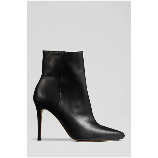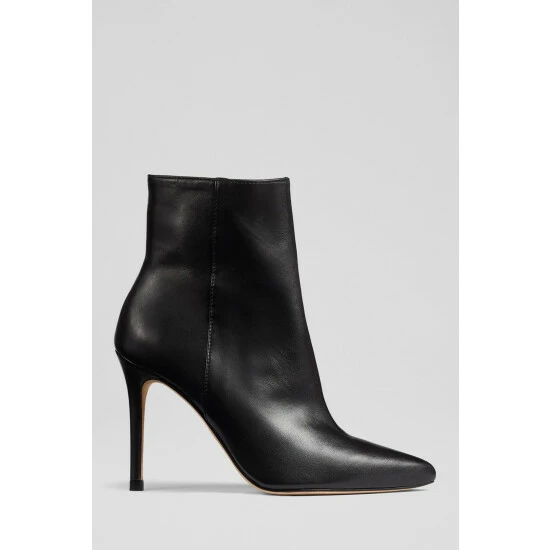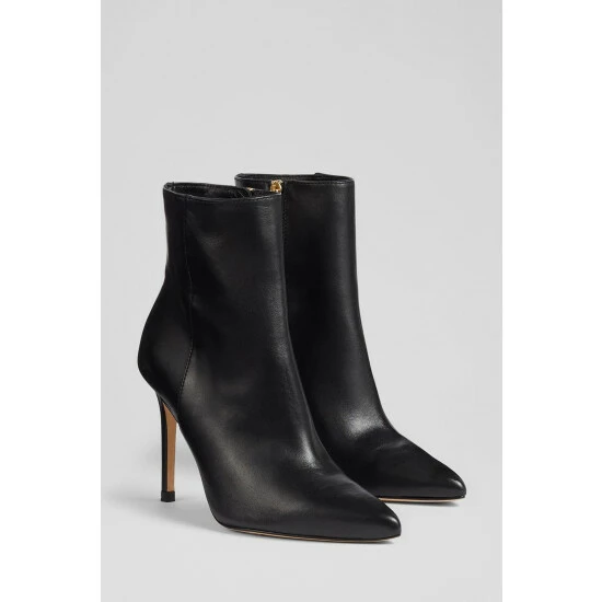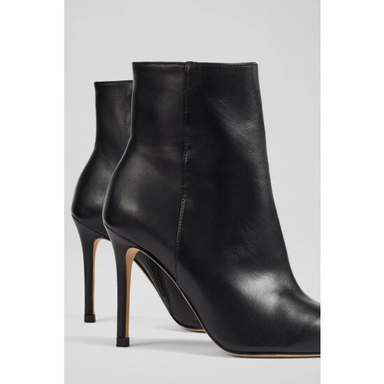 The Cleo stiletto ankle boots are crafted in Spain from black nappa leather. They have a pointed toe, a sleek silhouette, an inside zip and a 100mm stiletto heel.
