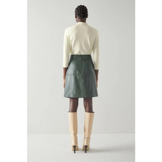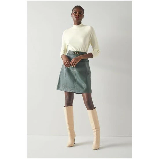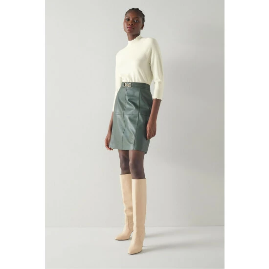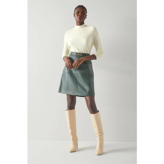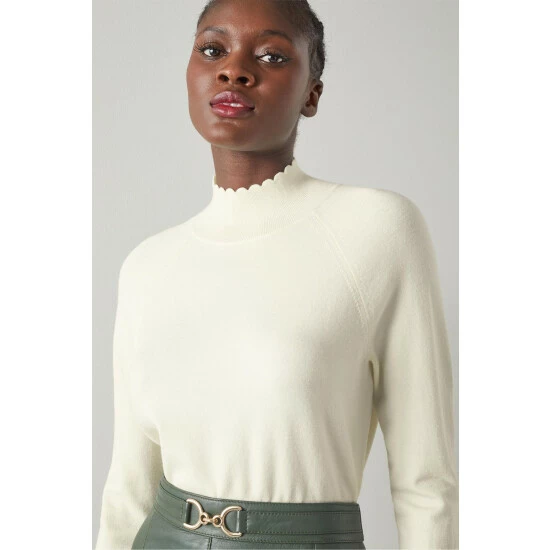 The Betty jumper is crafted from extra-fine merino wool in cream. It has a turtle neck with a scalloped edge, three-quarter sleeves with matching cuffs, a regular fit and a scalloped hemline.