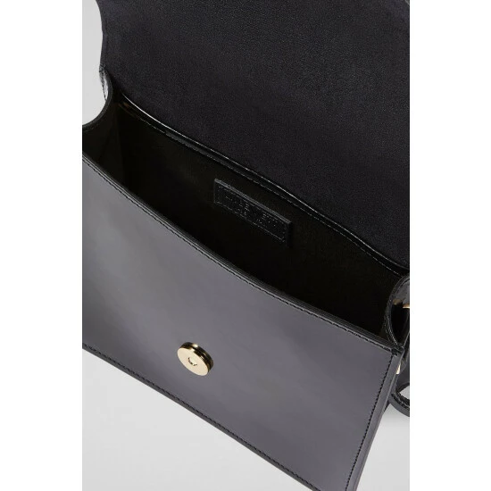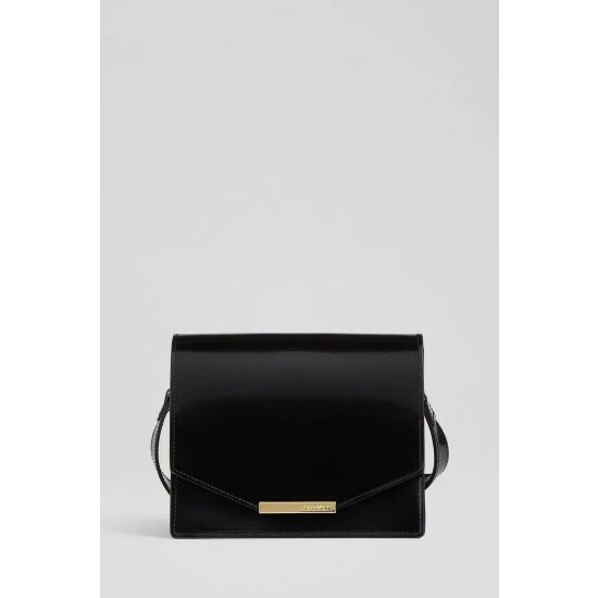 The Dawsey cross-body shoulder bag is crafted in Italy from black high-shine leather. It has an envelope front, an adjustable-length shoulder strap, a hidden popper fastening, a fabric and suede lining and an inside slip pocket.