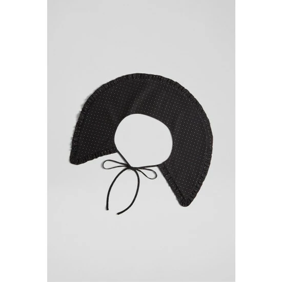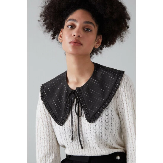 The Dolly collar is crafted from cotton. It s a vintage-inspired, rounded large collar with a pretty scallop edge, and it ties up to the front.