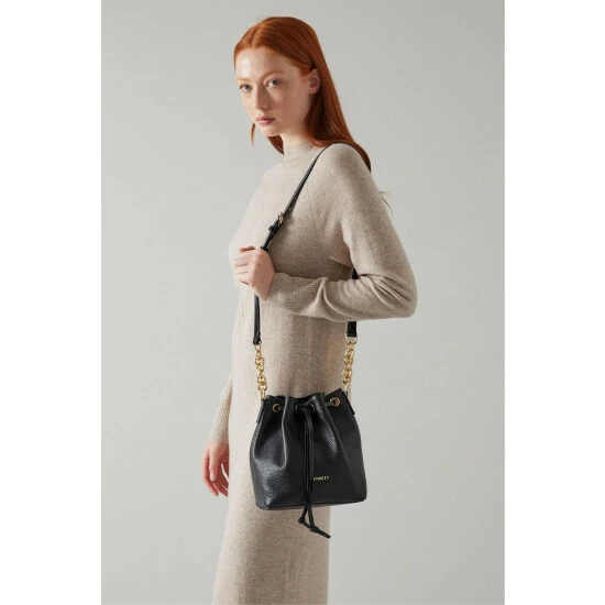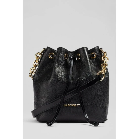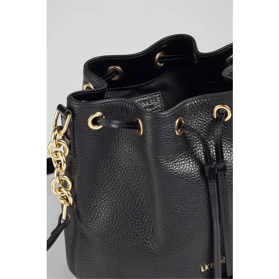 The Eliza bucket bag is crafted in Italy from grainy leather in black. It has a drawstring top and crossbody strap, it’s finished with gold-tone brassware and is lined with recycled cotton.