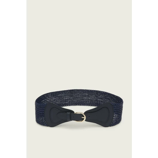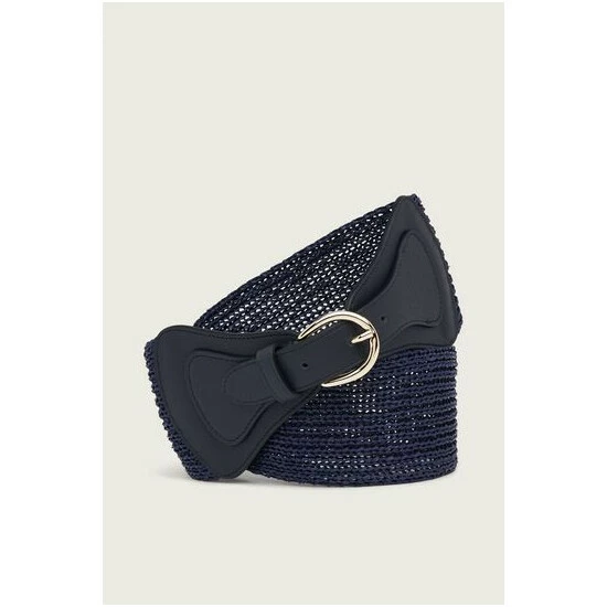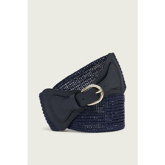 The perfect summer belt, Gemima is a wide statement belt that’s designed to cinch waists during the sunshine months. It’s crafted in Italy from stretchy woven navy blue straw and matching leather, and fastens with an oval silver-tone buckle. Wear it over cool cotton and linen sun dresses to create some shape.