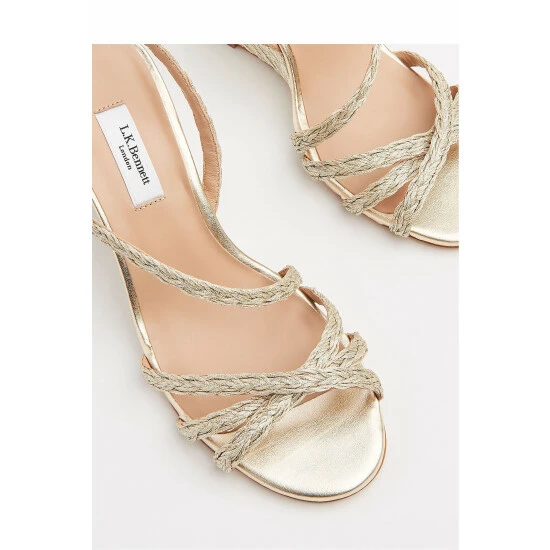 Their versatile Shiela wedges offer height and comfort to the summer months. Crafted in Spain from gold rope fabric, they are an asymmetric style with a slingback and matching wedge heel. they look great with summer dresses or wide-leg pants alike. Heel Height: 8.5 cm / 3.3', Toe Shape: Round Toe.