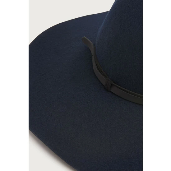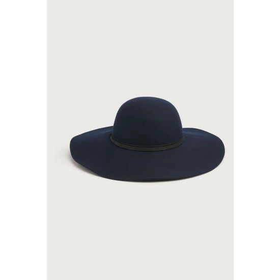 A fedora hat is full of Seventies’ flavour, which works perfectly with our autumn/winter collection. Our Kendall hat is crafted from classic navy blue wool and has the signature rounded crown, wide, floppy brim and is finished with a stylish black belt-style trim. Wear it as a finishing touch with fluffy knits and flared denim or your favourite midi dress.