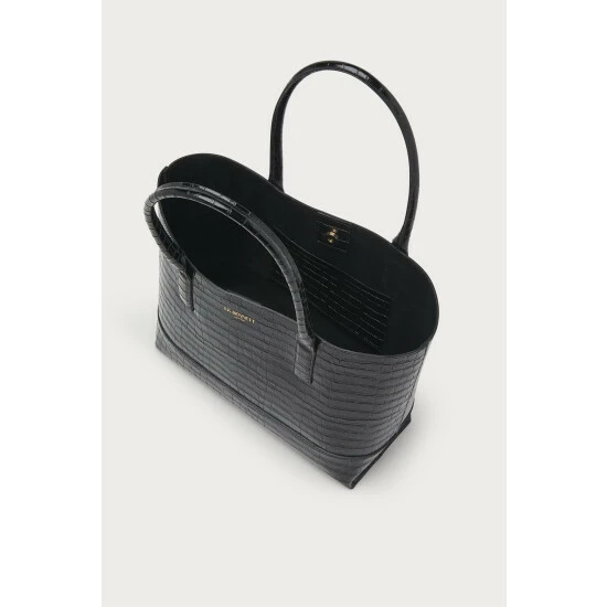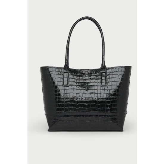 A new tote bag in our autumn/winter handbag collection, Lacey is crafted in Italy from beautiful black croc-effect leather. Designed with everyday use in mind, this spacious tote has a luxurious sheen to the exterior leather and is lined in supersoft suede. It has double shoulder straps, an inside slip pocket and fastens with a magnetic dot. Use it daily to easily carry all your essentials.