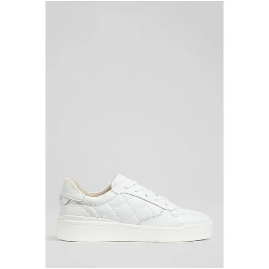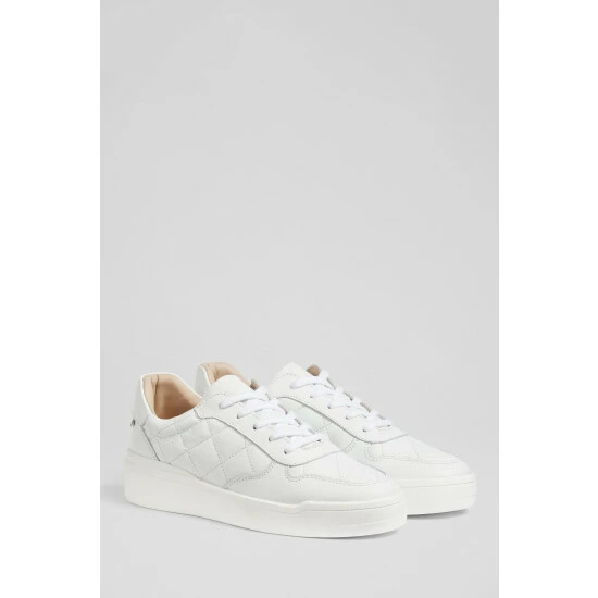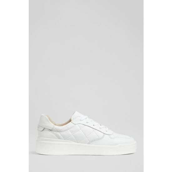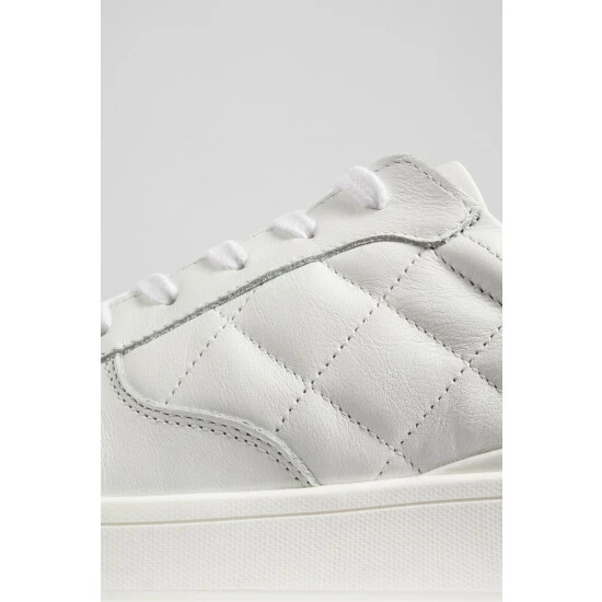 The Campbell trainers are crafted in Portugal from white quilted leather. They have a round toe, plain white leather detailing, matching white laces and a chunky rubber sole.