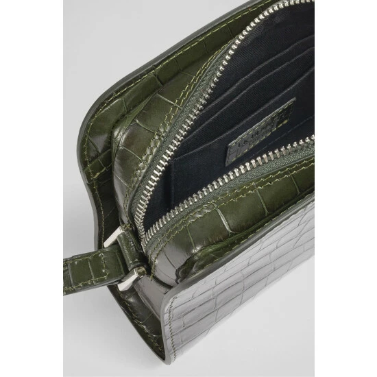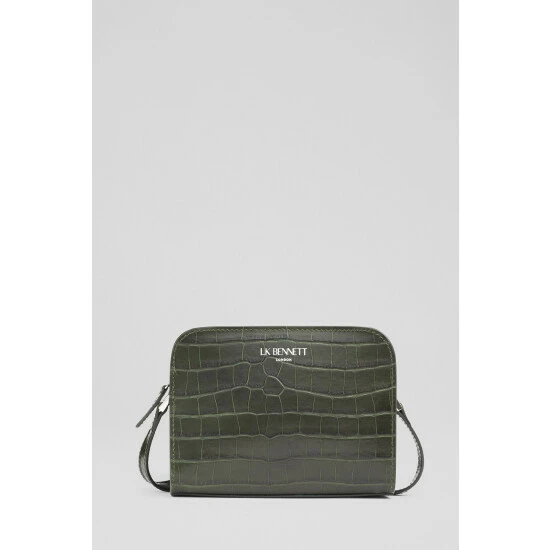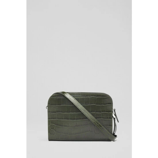 The Marie cross-body bag is crafted in Italy from recycled forest green croc-effect leather with silver hardware. It has a hidden zip-around fastening, two compartments, branding detail to the front, a cotton lining and an adjustable cross-body strap.