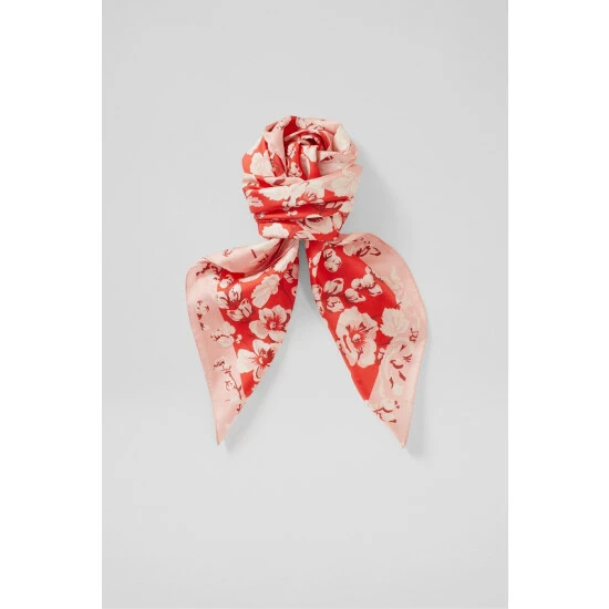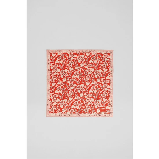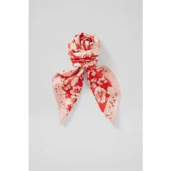 The Lyla scarf is crafted from silk in pale pink and red. It’s a square style with a vintage archive English rose print and border detail.