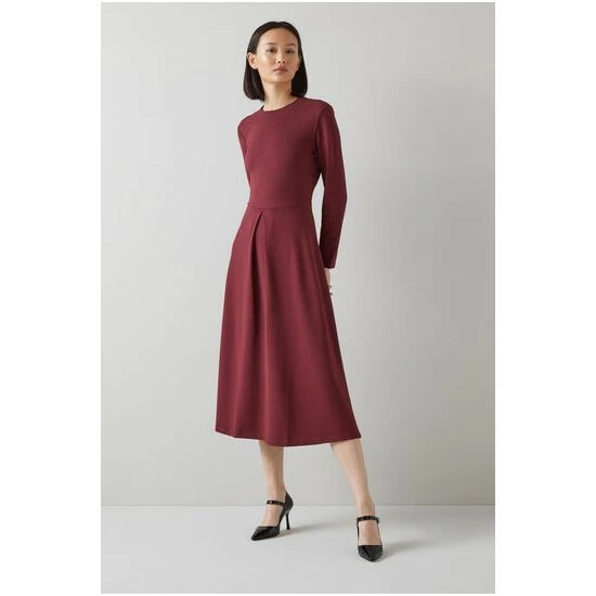A shapely fit and flare dress is a wardrobe classic and the Maria dress in their LKB Conscious collection offers everyday comfort and Eco-conscious fabric. Crafted in Portugal from LENZING™ ECOVERO™* in caber-net red, it has a round neck, long sleeves, a fitted bodice, a pleat to the front and a flared midi skirt. Wear it with a pair of contrasting ankle boots and a warm wool coat on cold winter days.