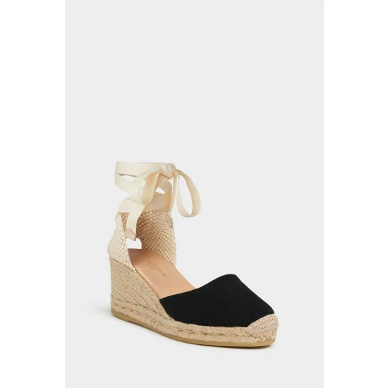 The classic wedge espadrille never falls out of style, it’s an essential over the summer months, and the Maureene espadrilles are designed to pull on and go when the sun shines. Crafted in Spain from soft black canvas, they’re a round toe style with an espadrille wedge sole and they fasten with cream cotton ties up the leg. Wear them with cool cotton sun dresses on the warmest of days.