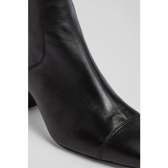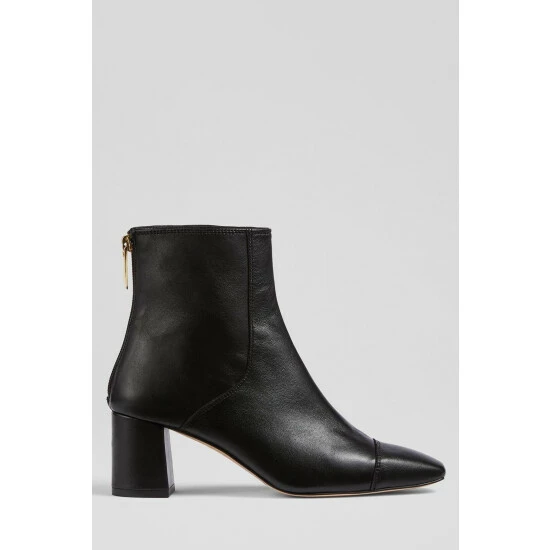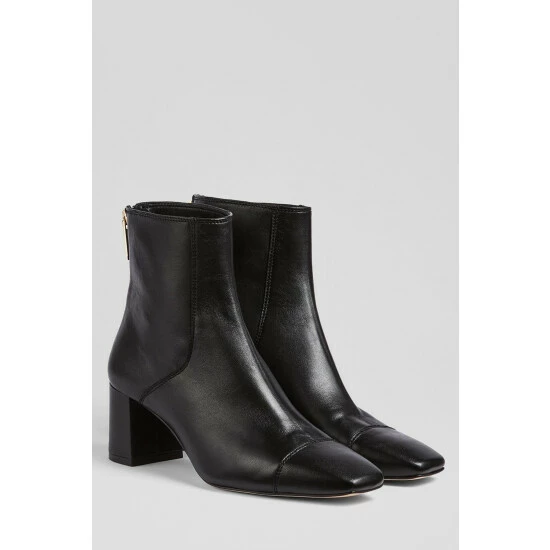 The Maxine ankle boots are crafted in Spain from black nappa leather. They have a square toe with toe cap, stitching detail, a back zip and a 60mm leather-covered block heel.