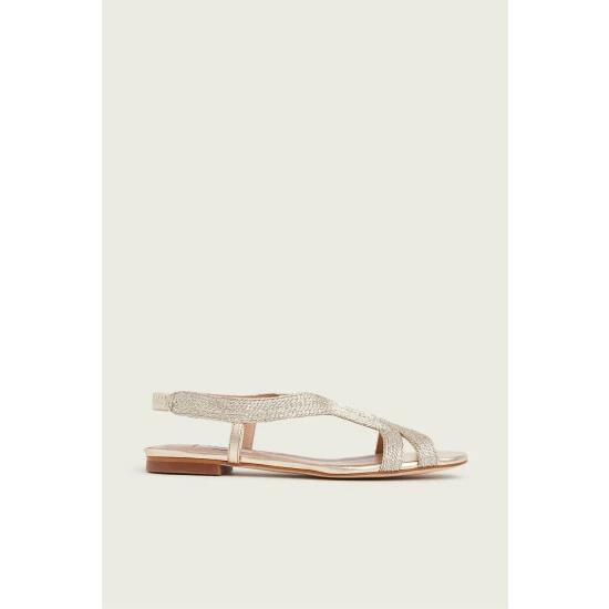 Every spring we love this gold metallic rope flat sandals, and this season we welcome Renee to our collection. Crafted in Spain from soft metallic yarn gold rope, they have two straps over the toes, T-bar detail up the foot and secure with an elasticated back strap. Wear them with summer dresses and skirts for everyday style with a touch of gold.