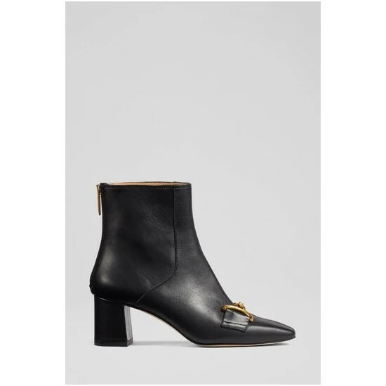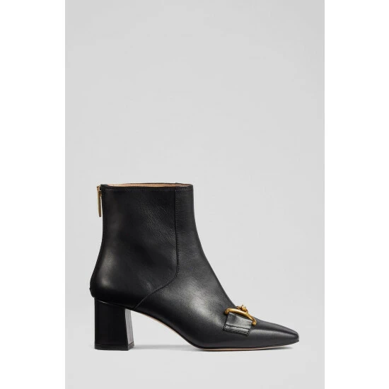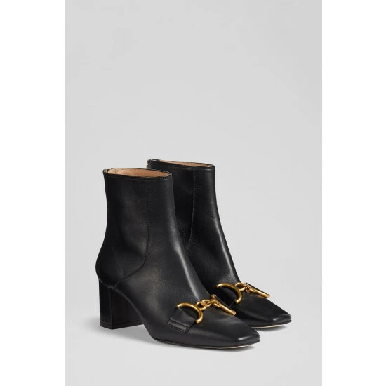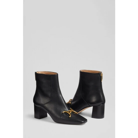 The Nadina boots are crafted in Spain from black Nappa leather. They have a square toe, gold snaffle detail, a back zip and a 60mm block heel wrapped in leather.