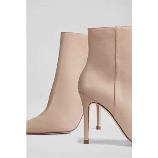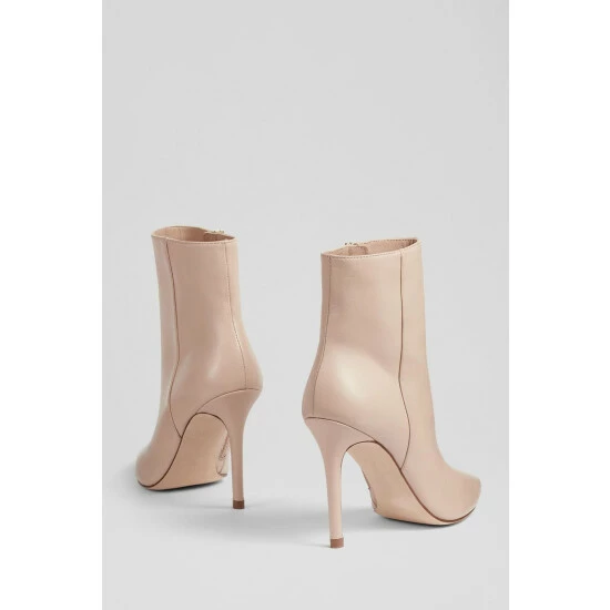 The Cleo stiletto ankle boots are crafted in Spain from latte-hued nappa leather. They have a pointed toe, a sleek silhouette, an inside zip and a 100mm stiletto heel.