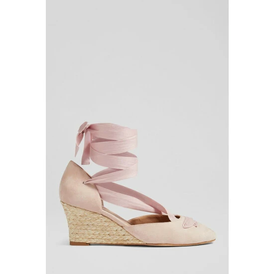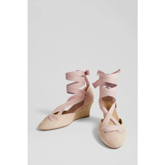 The Lana wedges are crafted in Spain from natural suede. They have a round toe, crossover strap detail across the foot and around the ankles in matching natural, a sleek shape and an espadrille wedge heel.