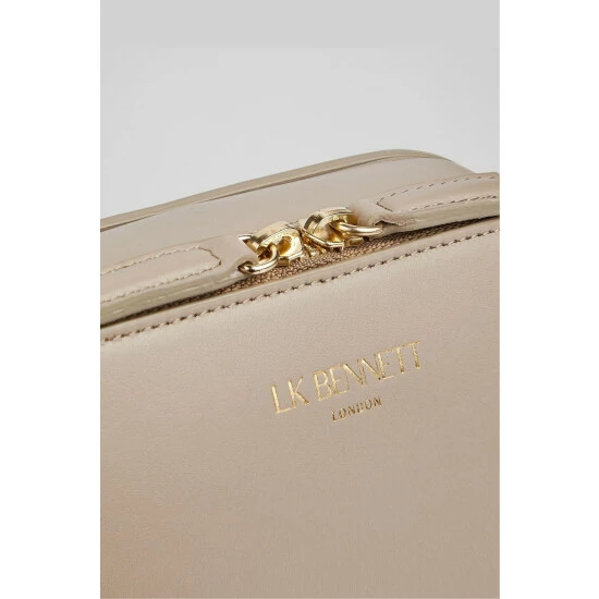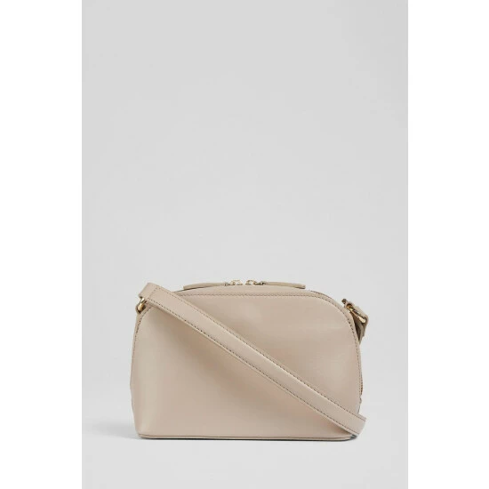 The Hudson cross-body bag is crafted in Italy from nappa leather in cream. It has an adjustable-length cross-body strap, a front pocket with a hidden press stud, double zip detail and it’s fabric-lined with a slip pocket.
