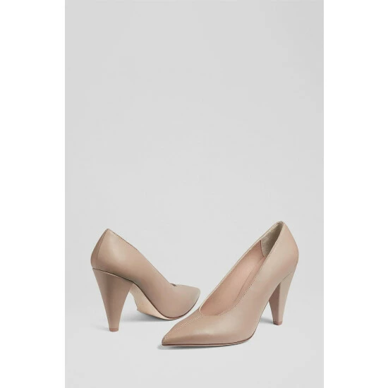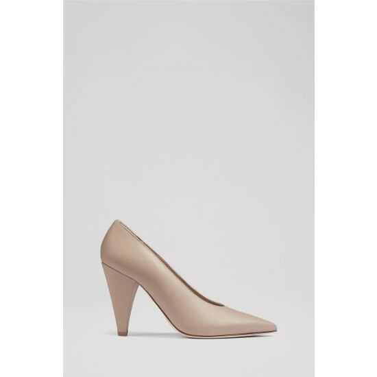 The Micaela courts are crafted in Italy from taupe nappa leather. They have a pointed toe, a V-top line with a centre seam and a 90mm cone heel.
