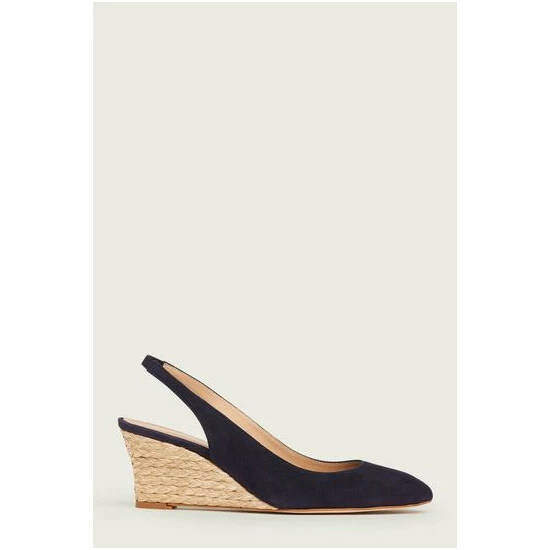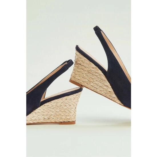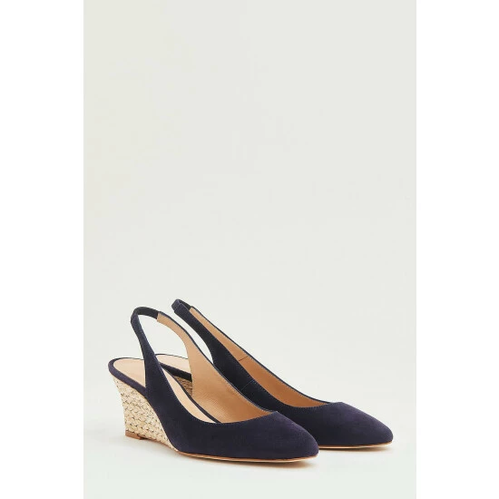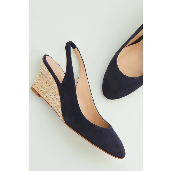 This Henny slingbacks are an elegant summer shoe with the perfect smart/casual balance. Beautifully-crafted in Spain from super-soft navy blue suede, they have a round toe, an elasticated slingback for the perfect fit and a 65mm espadrille wedge heel. Wear them as an alternative to your usual courts for a more summery feel.