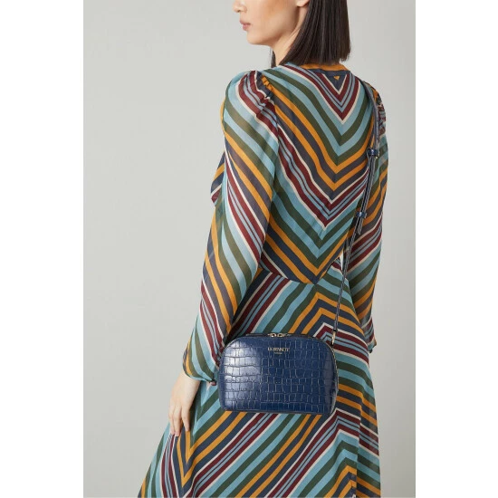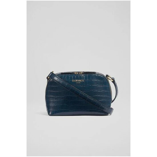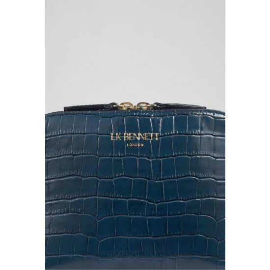 The Hudson cross-body bag is crafted in Italy from croc-effect leather in navy blue. It has an adjustable-length cross-body strap, a front pocket with a hidden press stud, double zip detail and it’s fabric-lined with a slip pocket.