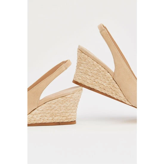 This Henny slingbacks are an elegant summer shoe with the perfect smart/casual balance. Beautifully-crafted in Spain from super-soft beige suede, they have a round toe, an elasticated slingback for the perfect fit and a 65mm espadrille wedge heel. Wear them as an alternative to your usual courts for a more summery feel.