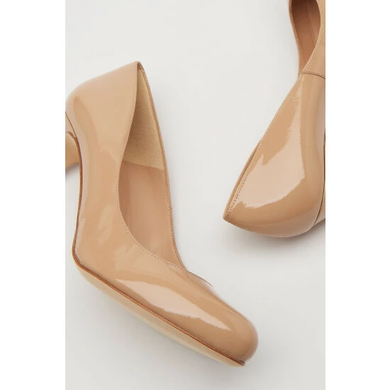 A classic LK Bennett style, these stylish Stila courts are crafted in Spain from glossy nude patent leather. They have an almond-shaped toe, a single sole and an elegant stiletto heel.