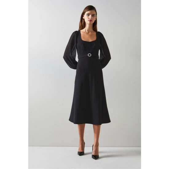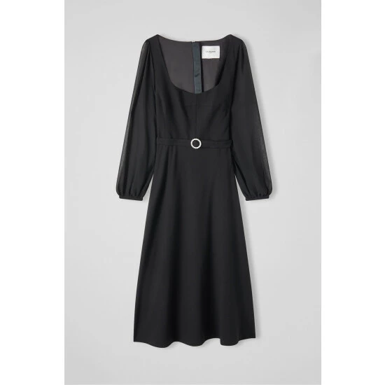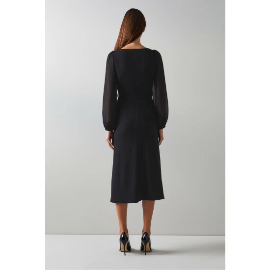 LK Bennett Perdy Black Crepe Sheer Sleeve Dress