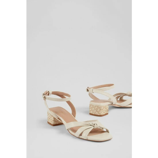 The Peyton sandals are crafted in Spain from cream nappa leather. They re a strappy style that knot at the front, have a buckled ankle strap and an espadrille, 35mm block heel.