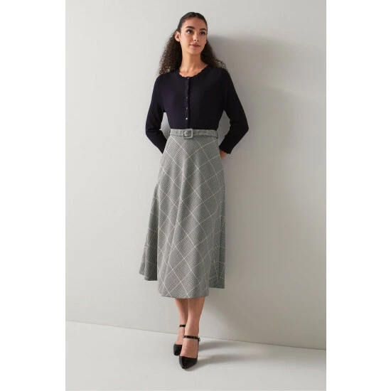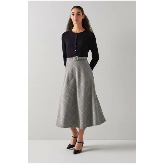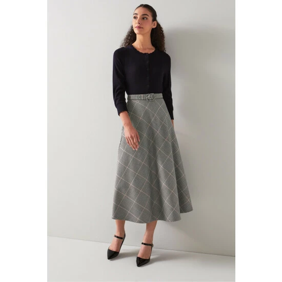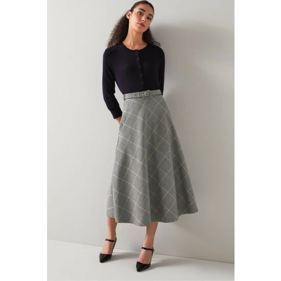 LK Bennett Pink Mya Prince Of Wales Check Bias Cut Midi Skirt