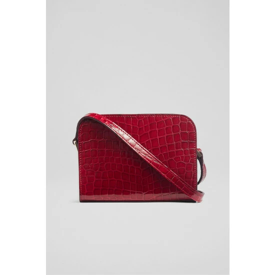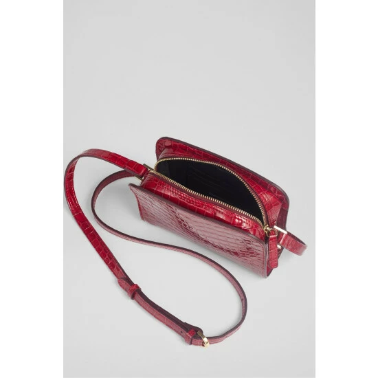The Marie crossbody bag is crafted in Italy from red dahlia croc-effect patent leather. It has a hidden zip-around fastening, two compartments, branding detail to the front, a cotton lining and an adjustable crossbody strap.