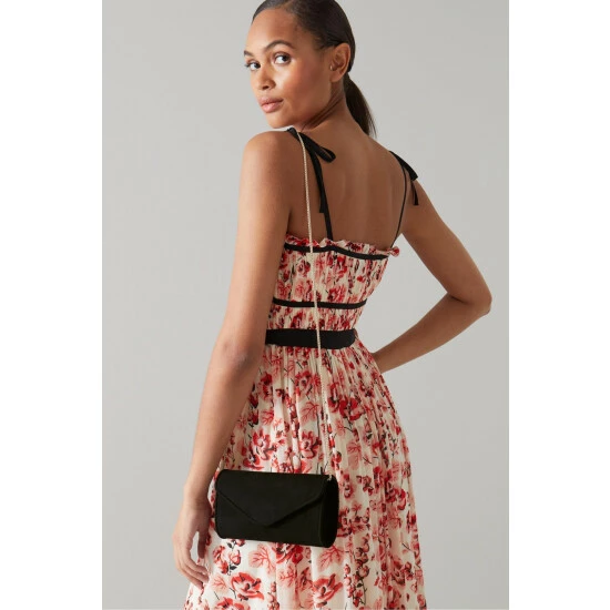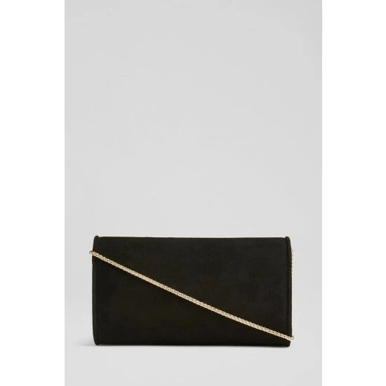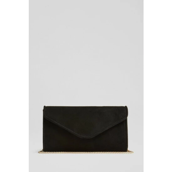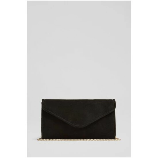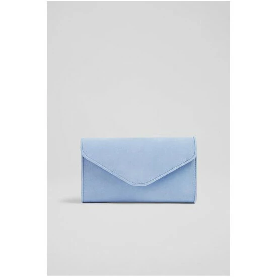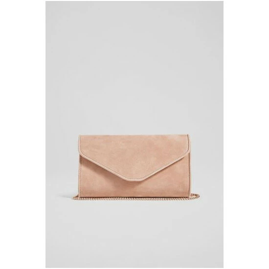The Dominica clutch bag is crafted in Spain from suede. It's an envelope clutch with a piped trim and fastens with a hidden press stud.