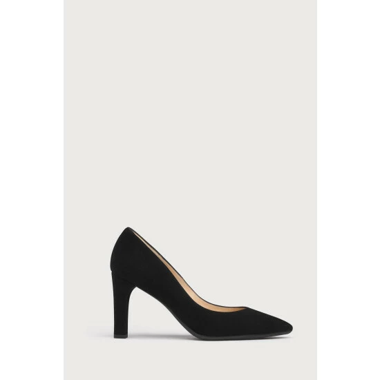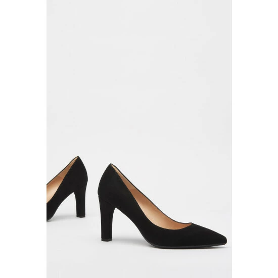 Stylish, timeless and incredibly practical, our Tess courts are the perfect addition to your work wardrobe. Crafted in Spain from beautiful black suede, they have a pointed toe, a comfortable rubber sole and a block heel, making them perfect for all-day wear.