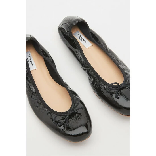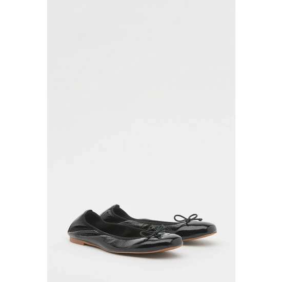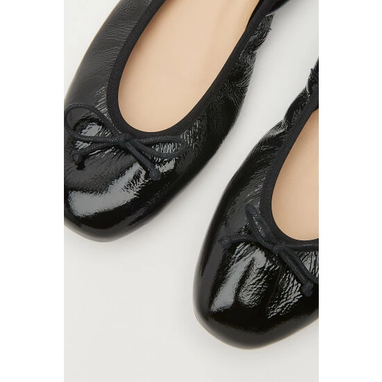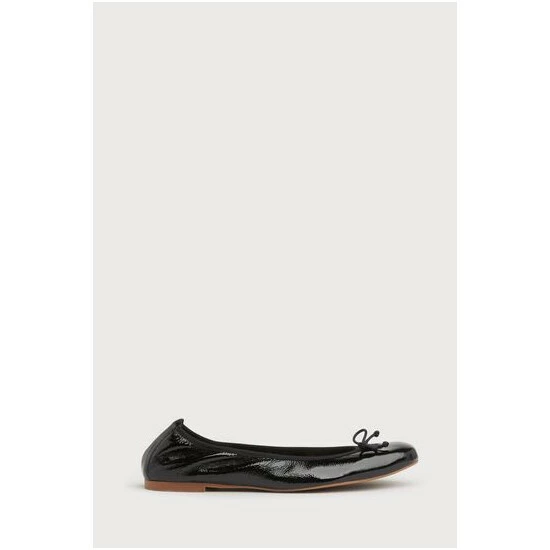 Their Trilly ballet pump is made in Spain from crinkled glossy black patent leather. Offering a softer and more comfortable fit than classic patent leather, these everyday flats have a round toe, a lightweight, flexible sole and have ruched detail to the back of heel offering a secure fit.