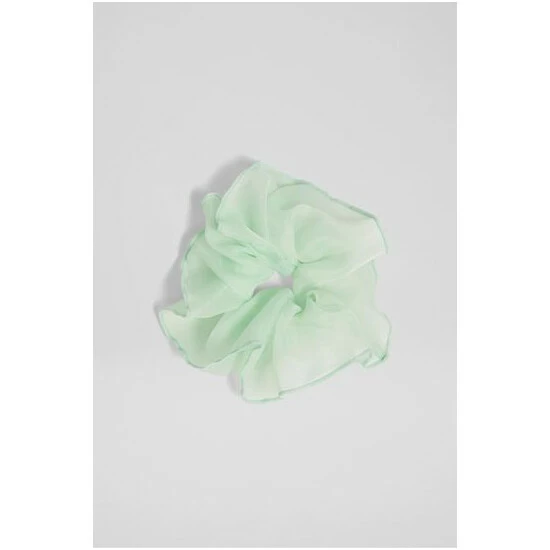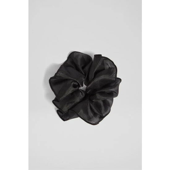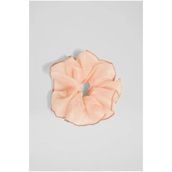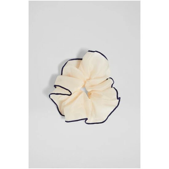 The Vivian scrunchie is crafted from sheer organza finished with a navy stitched trim.