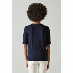 LK Bennett Sylvie Jersey Ruched-Front T-Shirt Navy Blue
